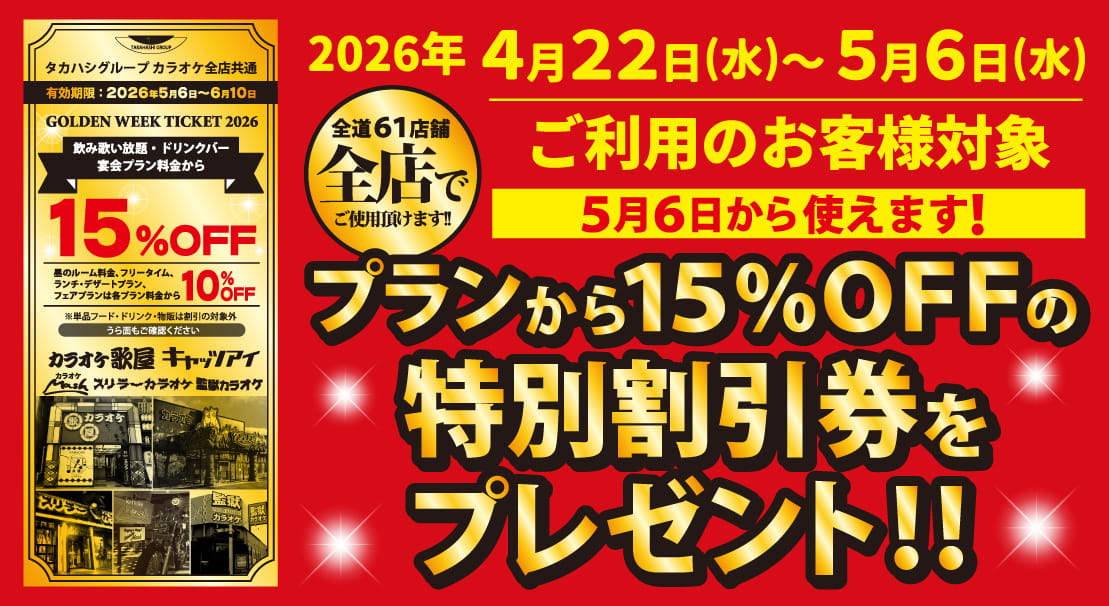 プランから15%OFFの特別割引券 プレゼント!!