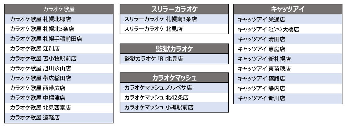 ●カラオケ歌屋・スリラーカラオケ・監獄カラオケ・カラオケマッシュ・カラオケキャッツアイ店舗をご利用中に採点した点数のみ対象