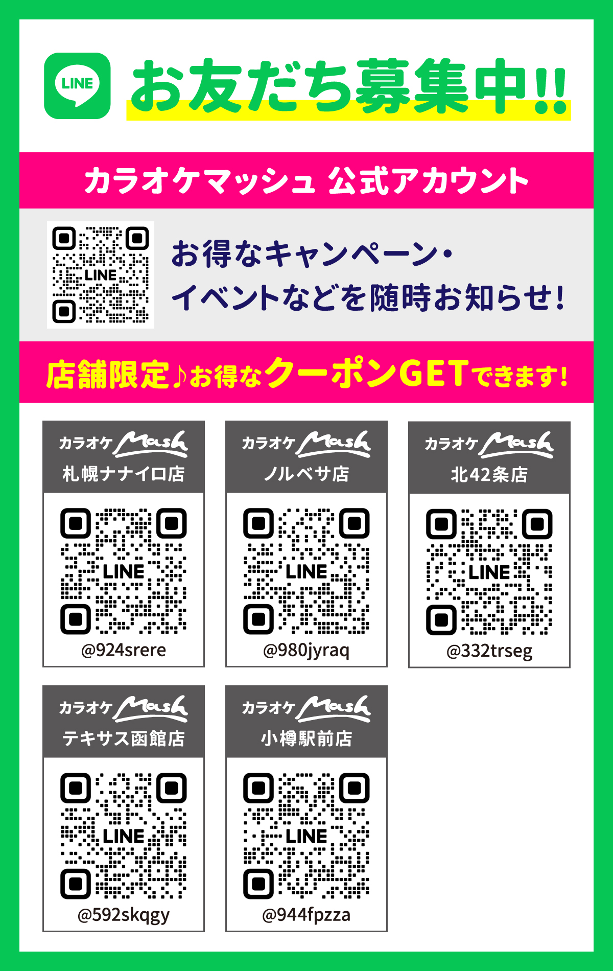 【カラオケマッシュ】LINE公式アカウントお友だち募集中‼